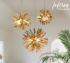 Die Leuchten aus der Inferno-Serie werden von Hand zusammengesetzt. Es handelt sich hierbei um Weingehölz. Der botanische Name lautet Bauhinia scandens Linn. Der Arbeitsaufwand ist groß und es braucht für die Fertigung erfahrene Mitarbeiter.
